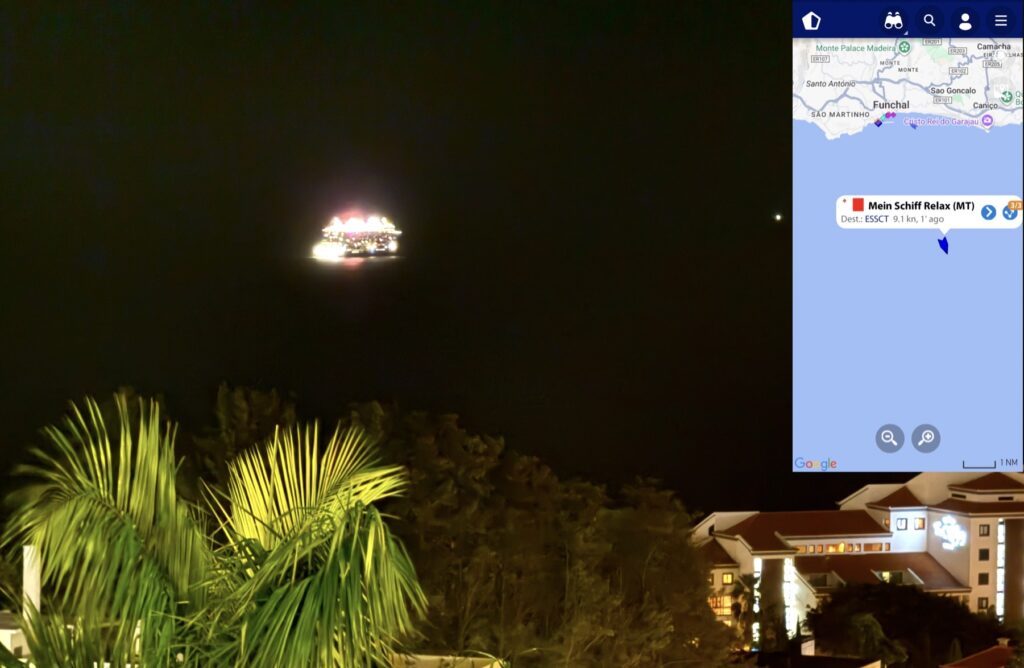 Back at the hotel we can see a big cruise ship departing. A handy app identifies it as the Mein Schiff Relax. This is good news as it means the town will be relatively quiet tomorrow, at least until the next one arrives.