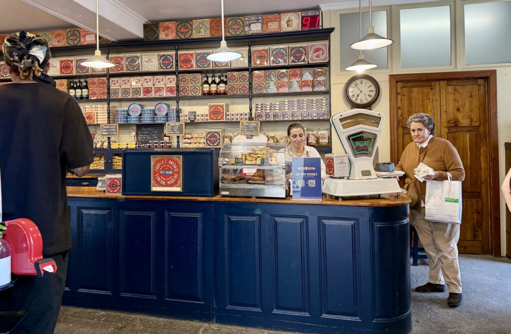 Some of the shops are very quaint. This one sells confectionery, and still has the old Avery scales.